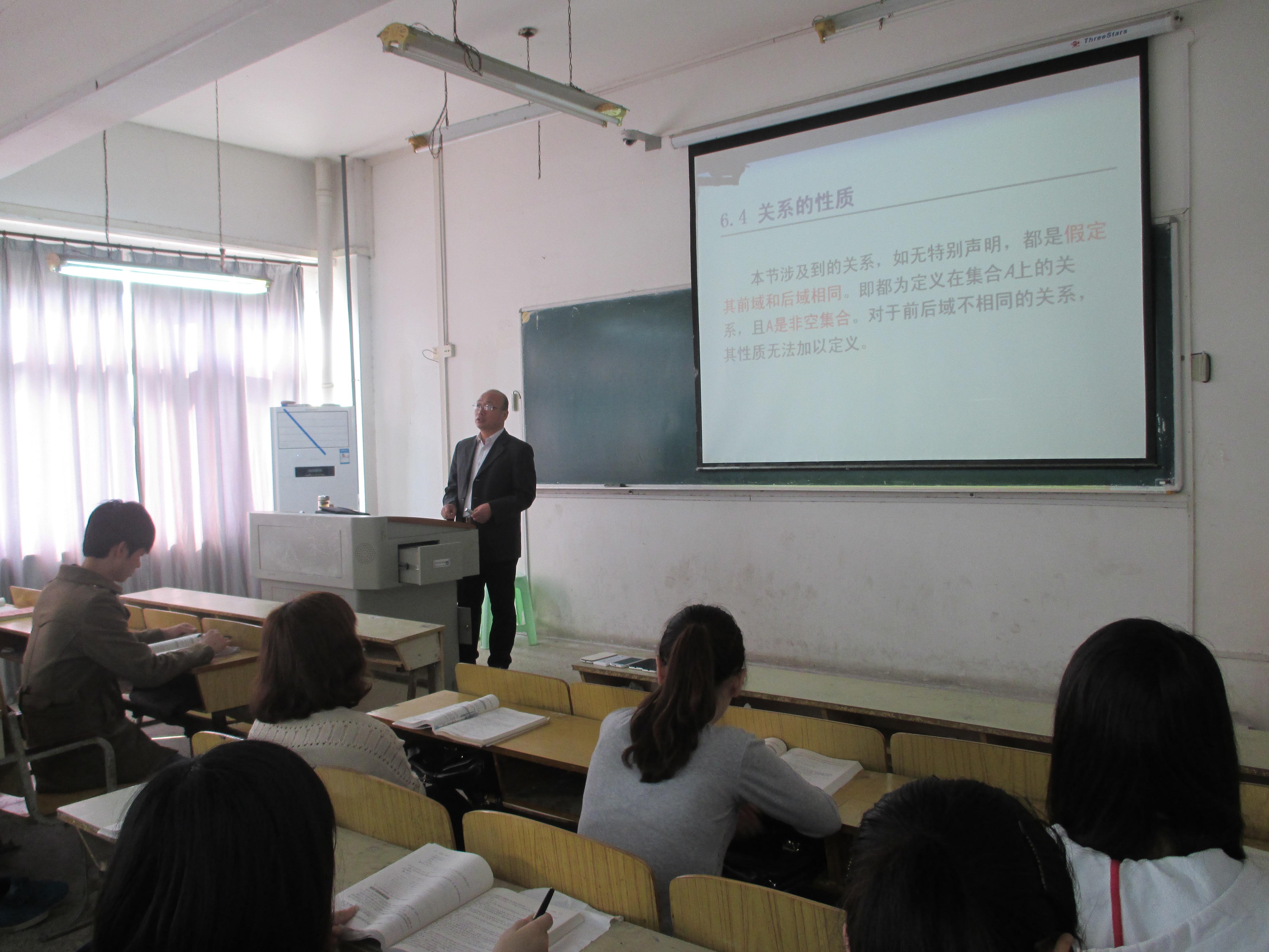 课堂上杨族桥老师首先回顾了上节课的基本内容,然后通过实际例子详细讲解了“关系的性质”,杨老师声音宏亮,逻辑思维敏捷,采用启发式教学,引导学生积极思考,营造了较为活跃的课堂气氛。