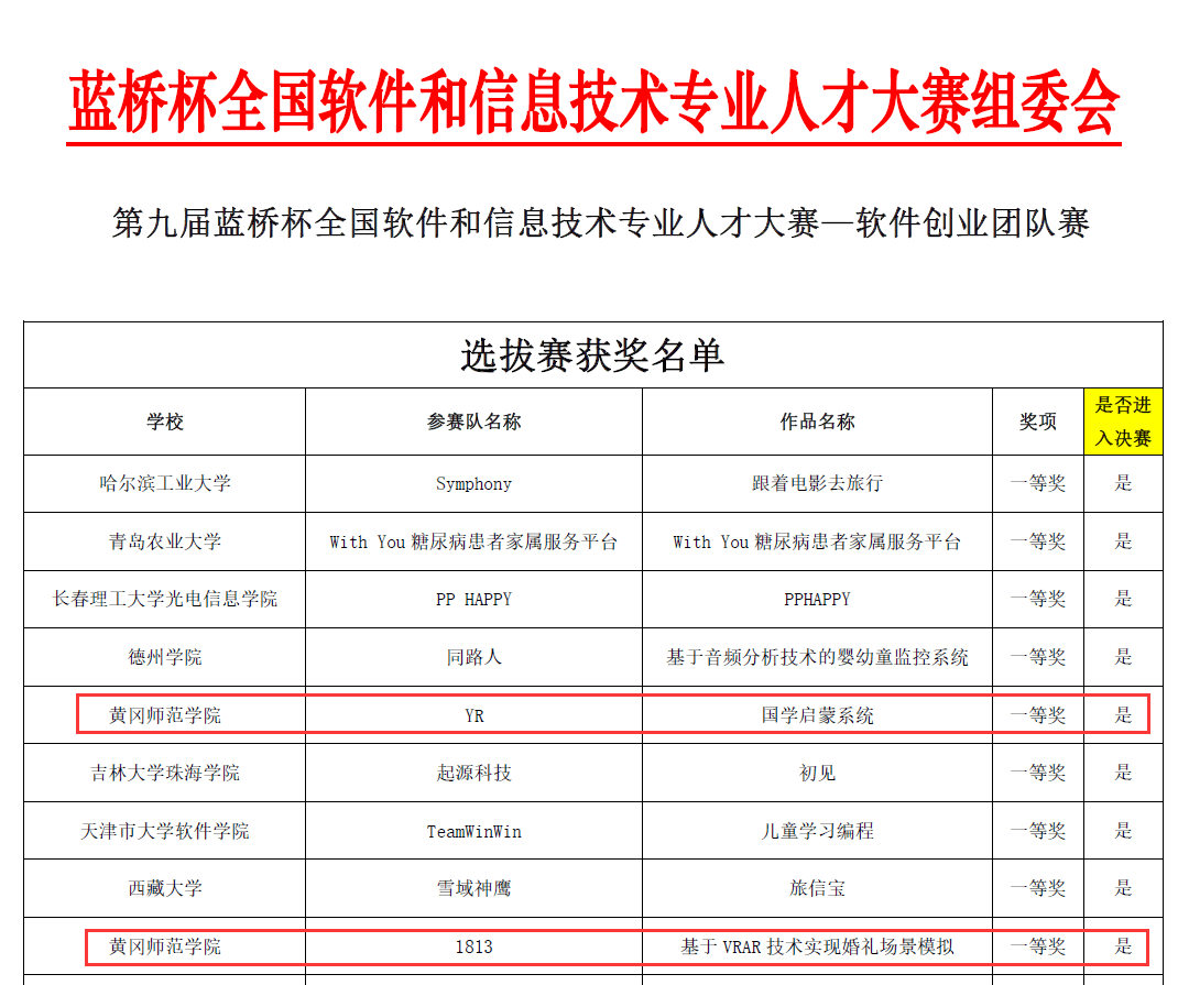 4月25日,第九届“蓝桥杯”全国软件和信息技术专业人才大赛软件创业团体赛全国选拔赛成绩揭晓,我校共获得一等奖2项、二等奖2项、三等奖2项的历史最好成绩。