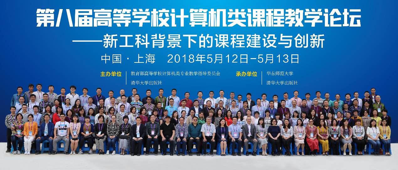 2018年5月12-13日由教育部高等学校计算机类专业教学指导委员会、清华大学出版社共同主办,华东师范大学、清华大学出版社承办的“第八届高等学校计算机课程教学论坛——新工科背景下的课程建设与创新会议”在上海举行。我院张青院长,涂焱楚和杨洋老师参加了本次会议。