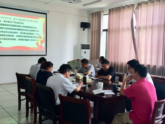 2018年5月15日,学院召开领导班子扩大会议,会上总支书记何中林讲了《浅论宪法修改的时间、意义、要求和原则》专题党课,他从“宪法修正案诞生时间”、“宪法修改的重大意义”、“宪法修改的总体要求”、“宪法修改的原则”四个方面进行深刻解读。