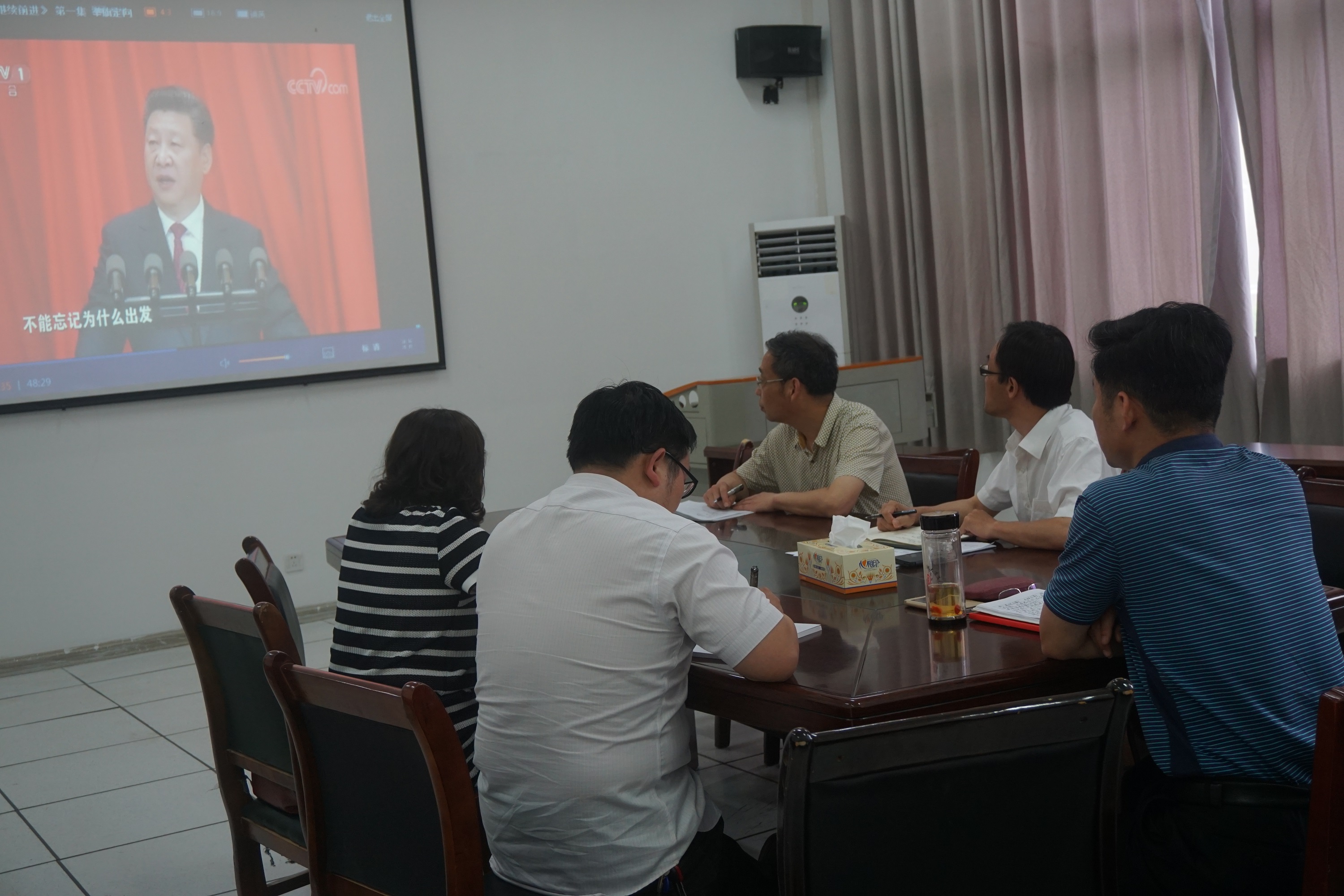 2018年5月28日,学院组织党政联席会议全体成员观看了《不忘初心,继续前进》的电视专题片。会上还传达学习了学校《关于开展师德建设长效机制贯彻落实自查工作的通知》《关于集中整治形式主义官僚主义的实施方案的通知》,并认真开展自查自纠工作。
