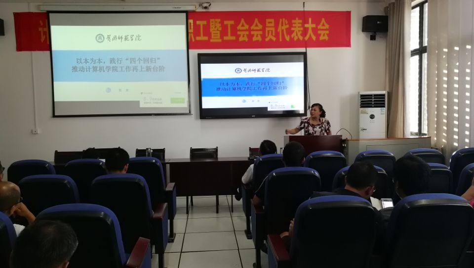 何中林以《保证本科教学工作中心地位,切实提高本科教育教学质量》为题作报告。他从 “‘以本为本’、‘四个回归’的含义”、“目前教学工作存在的不足”、“改革教学方法势在必行”三个方面做了深入分析。他指出,坚持“以本为本”,就要“多举措营造本科教育的良好氛围”、“适应产业与技术发展,优化计算机本科培养”、“建立完善的本科教学质量评价体系”、“倡导科教融合育人,推进本科生导师化管理”。
