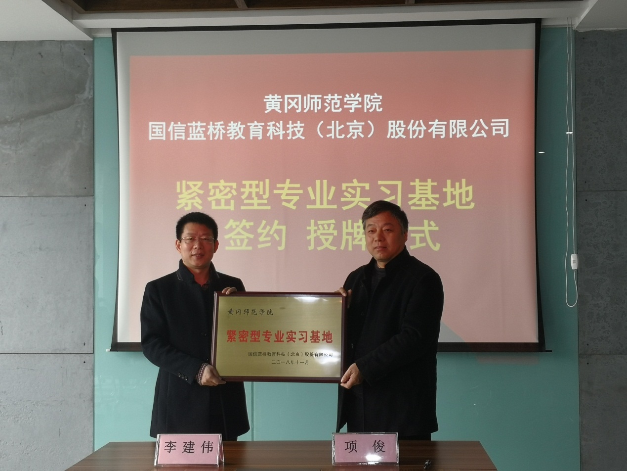 11月26日,教务处处长项俊、bevictor伟德院长胡志华一行前往国信蓝桥教育科技(北京)股份有限公司,参加紧密型专业实习基地签约授牌仪式并看望实习生。