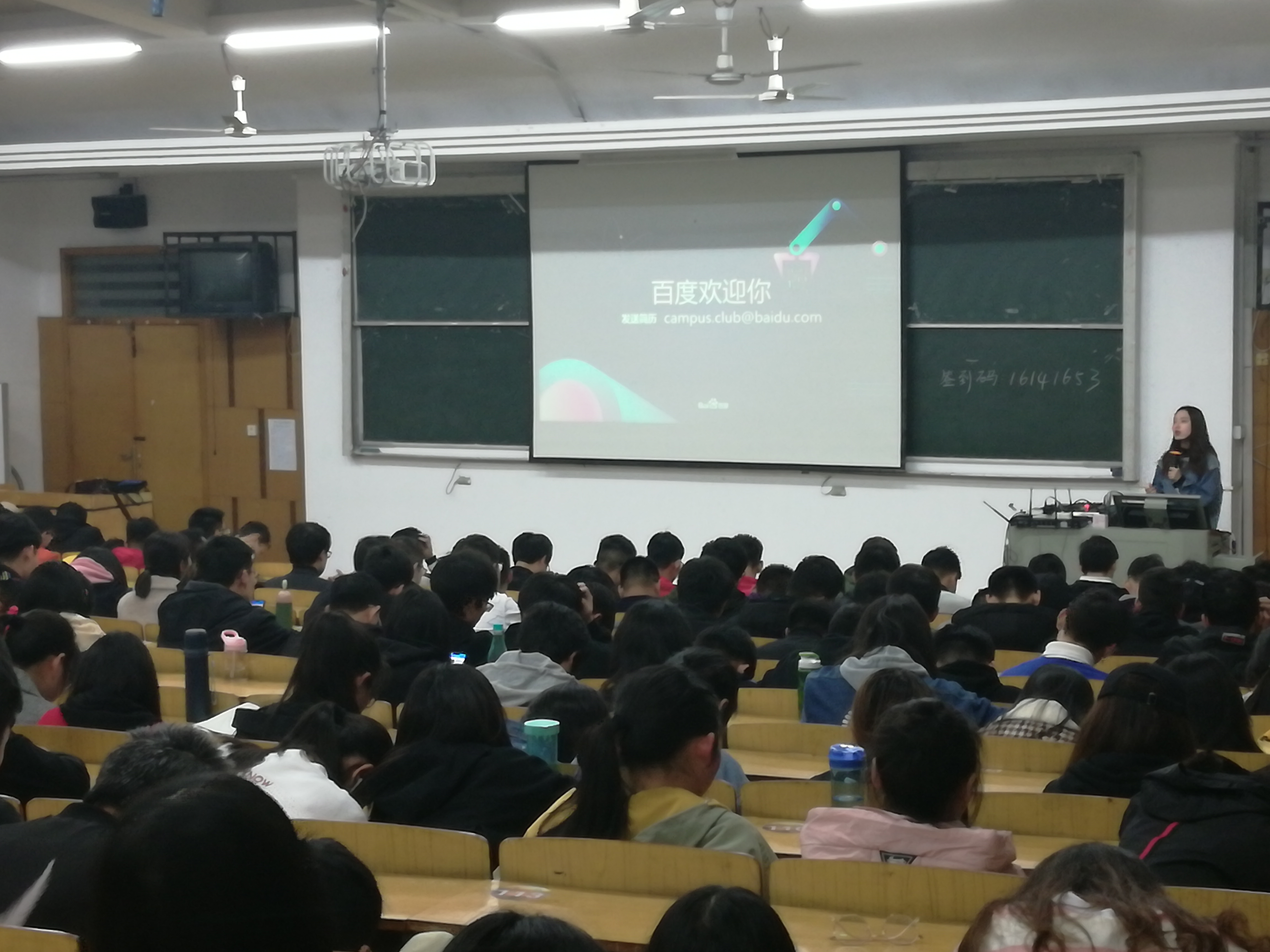 马天野为同学们详细介绍了百度大脑、百度搜索、智能小程序等功能以及合作、产业升级、积极创造的战略和进取思想,着重利用视频生动地讲解了DuerOS人机交互对话系统以及Apollo无人驾驶汽车,完美阐述了“科技让世界从复杂变得简单”的百度理念。