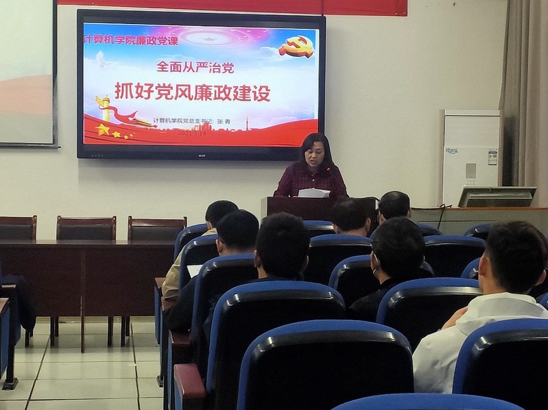 学院党总支书记张青结合学校第二十二个党风廉政建设宣传教育月工作提示作宣传动员,她强调在教育月活动中要加强组织领导、注重工作实效、加大宣传力度、加强督查检查。接着张青书记以“全面从严治党,抓好党风廉政建设”为主题,从党风廉政建设的重要性、如何抓好党风廉政建设、反腐的重要措施与成果、全面从严治党不忘初心四个部分讲授了一堂理论和实际相结合的廉政党课。她要求全体教职工,一要以加强党性党风党纪教育为先导,夯实勤政廉政思想基础;二要以规范权力运行为核心,扎实推进腐败风险预警防控工作;三要以健全反腐倡廉制度为根本,努力构建党风廉政建设长效机制;四要以严肃党纪政纪为目标,坚决查处违纪违法案件;五要以落实党风廉政建设责任制为抓手,促进党风廉政建设各项工作深入开展;六要全面落实中央八项规定精神,深入推进全面从严治党。