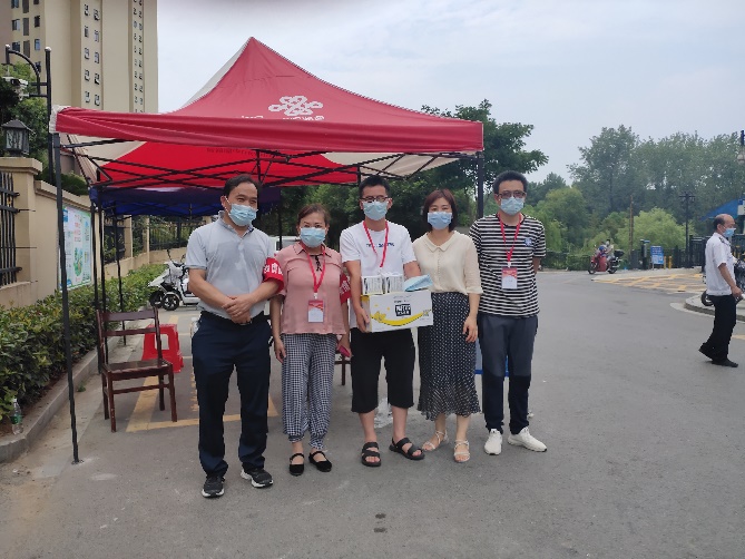 张书记一行先后来到熊家湾三组、昆仑东湖一号、建新社区、九成新天地、明珠广场、锦绣星城、大别山创业中心等执勤卡口,看望慰问学院下沉在疫情防控一线的党员教师,并为每一位值守党员送去了疫情防控和清凉避暑的物资。每到一地,张书记对学院下沉党员干部前期积极认真负责的工作态度给予充分肯定,并详细询问了近期疫情防控工作和值守安排的情况,督导党员教师们在做好自身安全防护的前提下履职尽责,积极承担所在社区的疫情防控工作,在疫情防控一线展现学院党员教师的风采。最后张书记不忘叮嘱大家注意防暑降温、个人防护,提醒大家合理安排休息时间,注意身体。