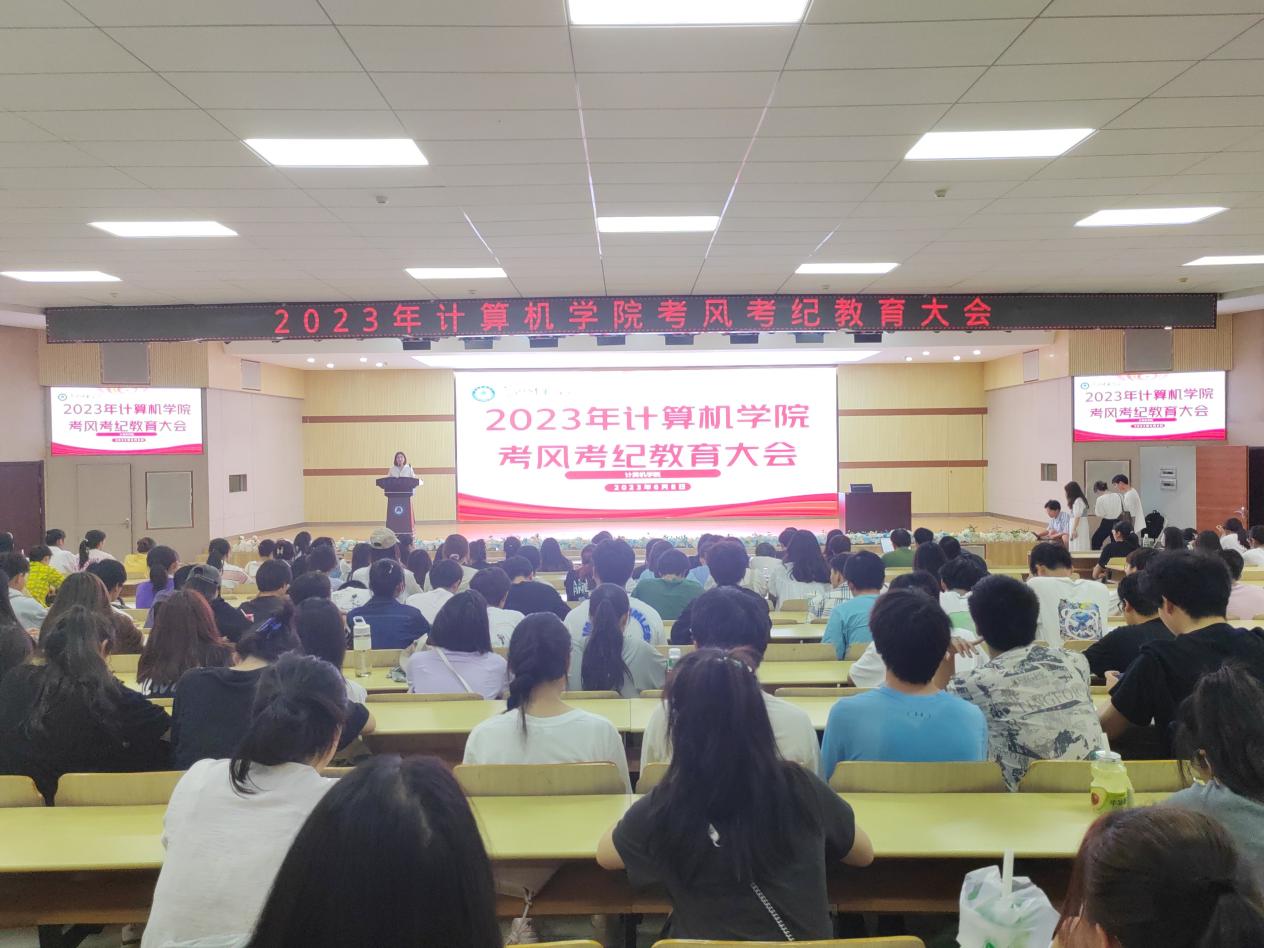 为深入学习宣传贯彻党的二十大精神,落实党的教育方针和立德树人根本任务,培育优良学风,创优育人环境,鼓励学生踔厉奋发、积极进取。计算机学院于6月8日下午16:30在北区报告厅召开2023年考风考纪教育大会。计算机学院党委副书记胡永红老师,全体辅导员,大一至大三全体同学参加此次会议。