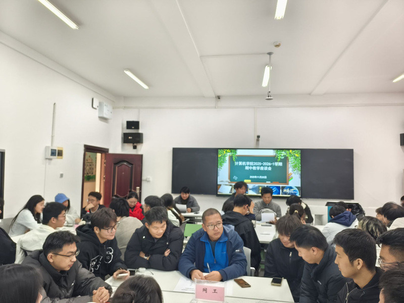 计算机与人工智能学院于2025年11月19日下午4点在逸夫楼325教室召开2025-2026学年第一学期期中教学座谈会,学院领导、各教研室主任及各班班委代表参会,围绕课程思政、教学内容与方法、教学形式与组织、课堂互动、作业与考试、课程实验等方面展开深入讨论。