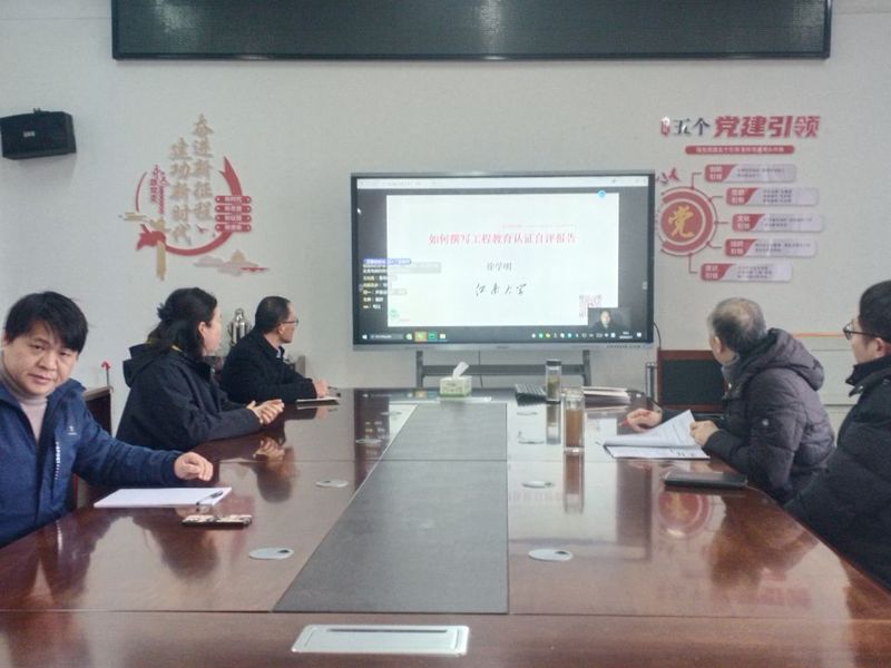 正值寒假休憩时段,为抢抓工程教育认证工作关键节点,确保自评报告撰写工作高质量推进,2026年2月1日,在学院F305会议室,工程认证自评报告撰写专题线上培训如期开展。全体参训领导与老师主动放弃假期休息,凝心聚力攻坚克难,以实干姿态推动认证工作落地。本次培训特邀江南大学徐学明教授主讲,学院院长何中林、副院长关玉蓉及工程认证全体小组成员全程参训,校教学质量评估中心主任向福主任莅临指导,培训分上午9:00-12:00、下午14:30-17:30两个时段有序开展,为自评报告撰写工作注入专业动能。